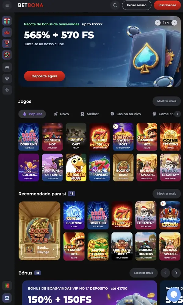 Bem-vindo ao BetBona Casino, onde o jogo no telemóvel foi criado para o dia a dia em Portugal. Pode abrir jogos em segundos, esteja em casa ou na rua, desde que tenha uma ligação estável. Com o BetBona mobile, o nosso site ajusta-se a ecrãs mais pequenos sem perder funcionalidades essenciais. Numa só conta, pode alternar entre slots, mesas com dealer ao vivo e jogos clássicos de cartas com o mesmo saldo e definições. Se gosta de rondas rápidas, as slots BetBona estão prontas com milhares de títulos e informações claras do jogo. Também mantemos as promoções ativas no telemóvel, para que nunca perca um bónus BetBona que combine com o seu estilo de jogo. Para jogadores que preferem um layout tipo app, a experiência da app móvel BetBona foi concebida para se manter fluida e segura em vários dispositivos, incluindo acesso ao casino BetBona Portugal através de um navegador moderno.