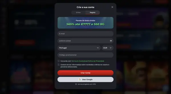 Alguns territórios estão restritos devido a leis locais, limites de pagamento ou controlos de risco. Se o seu país não estiver disponível no formulário de registo, significa que não podemos aceitar jogadores dessa localização neste momento. Fazemos isto para manter a conformidade e para garantir que as verificações de conta sejam consistentes para todos os jogadores. Se viajar, reveja o acesso à sua conta antes de depositar ou solicitar um levantamento.